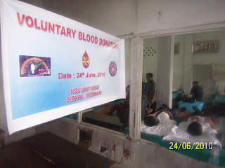 Our School NSS Unit organised Voluntary Blood Donation on 24.6.2010 for Aizawl Civil Hospital. 30 units of blood were donated. 23 males and 7 females.